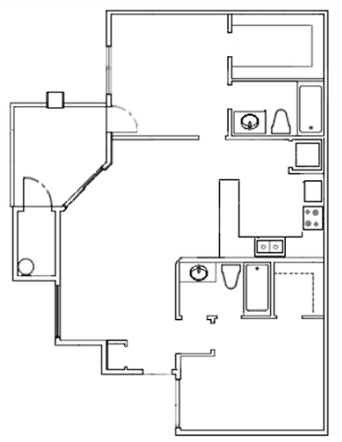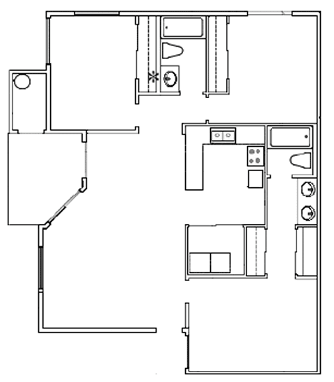 Floor Plan 2 Bedroom 2 Bath. 970 Sq Ft.